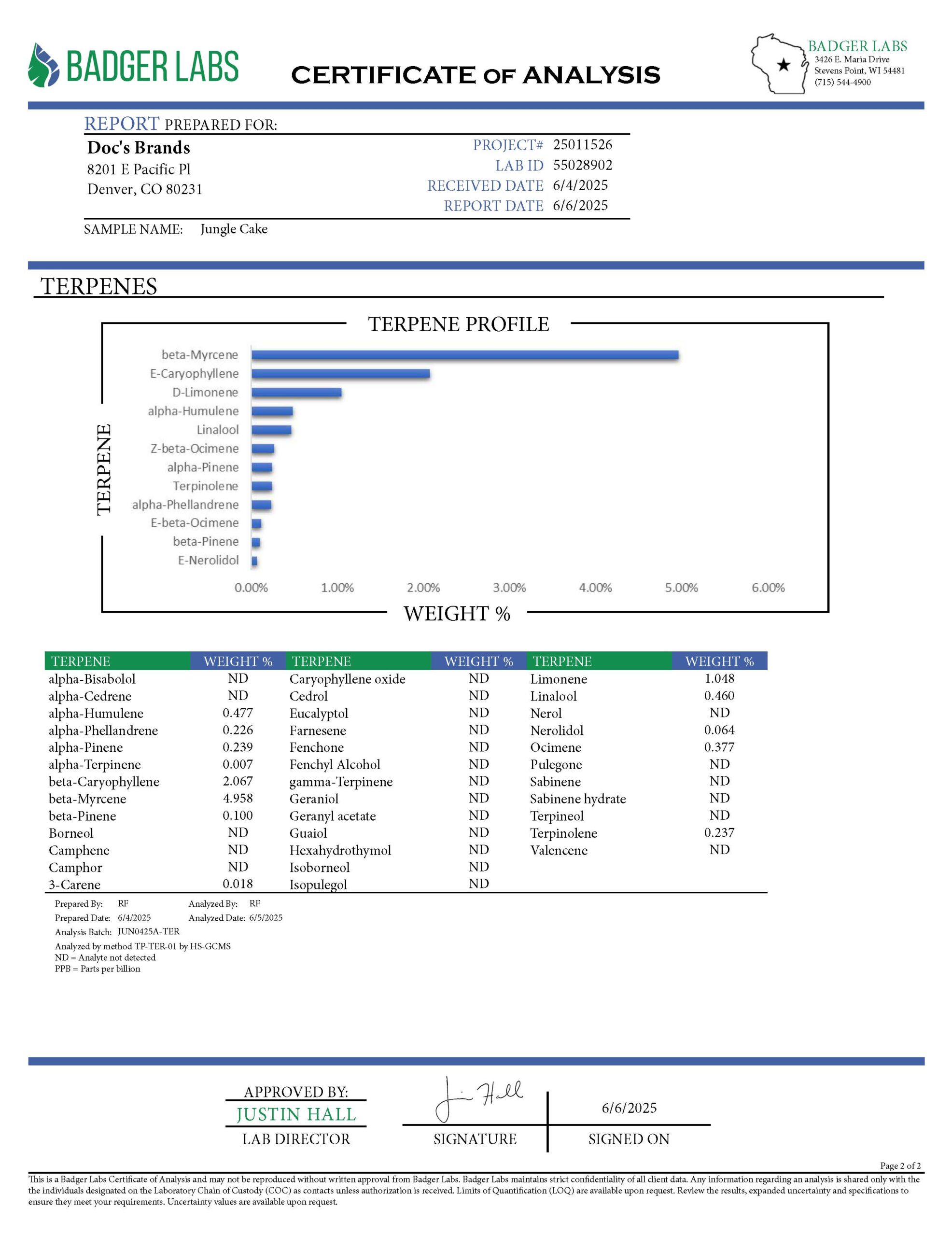The terpene profile is rich and multi-dimensional. Myrcene leads with earthy, fruity notes. Limonene adds uplifting citrus brightness, caryophyllene brings spicy pepper warmth, humulene contributes herbal depth, and linalool rounds it out with calming floral tones.