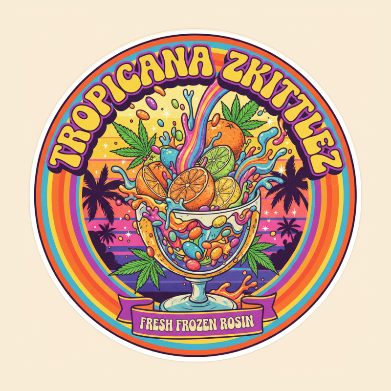 Tropicana Zkittles THCa Flower is a candy-store explosion of tropical flavor and color. This sativa-leaning hybrid combines Tropicana Cookies with Forbidden Zkittlez, merging the citrus-forward brightness of Tropicana genetics with the grape-candy sweetness of the Zkittlez family.